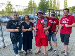 angekommen, haben wir uns erst einmal bei Spätsommerwetter mit Worscht und Steaks gestärkt. Ein Riesenkompliment auch an alle anderen OFC-Auswärtsfahrer. Bei diesen Spielen sieht man dann doch immer